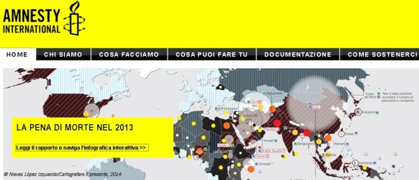 Al link http://appelli.amnesty.it/pena-di-morte-2013 è possibile navigare un’infografica interattiva sulla pena di morte nel mondo nel 2013; scaricare le mappe e il rapporto “Condanne a morte ed esecuzioni nel 2013”; il documento di fatti e cifre e firmare l’appello per Hussain Almerfedi, detenuto nella base navale statunitense di Guantánamo Bay dal 2003 e che, se accusato di avere aiutato combattenti stranieri, rischia la pena di morte.