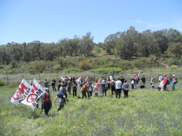 Rispondendo all’appello del Coordinamento regionale dei Comitati NO MUOS per un 25 aprile di liberazione dal MUOS e dalle guerre, il 25 aprile 2014 alcune centinaia di attivisti NO MUOS provenienti da tutta la Sicilia hanno dato vita ad una “passeggiata per i sentieri delle resistenza” attorno ai recinti della base militare USA. Hanno raggiunto un pozzo d’acqua comunale da tempo abusivamente recintato dai militari americani e alcuni anni fa oggetto di un forte inquinamento a causa dello sversamento di una grande quantità di gasolio necessario al funzionamento della base NRTF n.8.