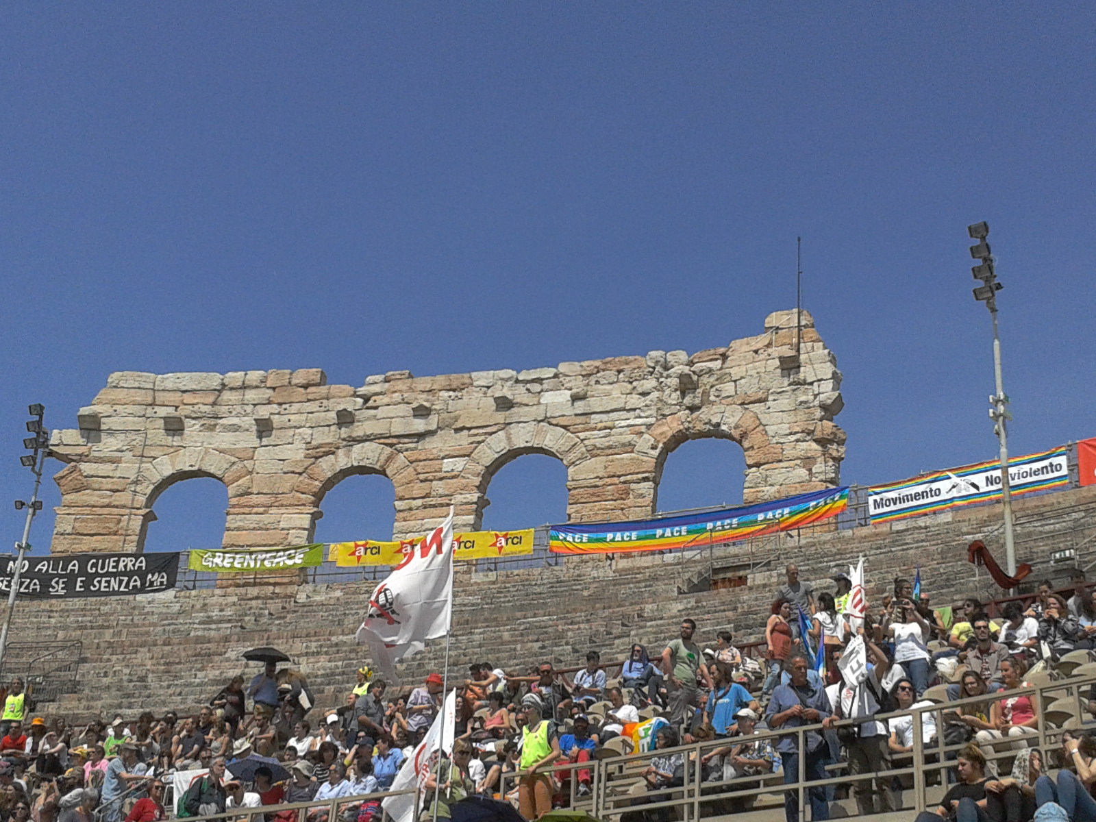 Alle ore 14 sono già 10.000 le persone accorse all’Arena di Pace e Disarmo a Verona, la grande iniziativa nonviolenta che chiede di dirottare i fondi destinati le spese militari su progetti a sfondo sociale.