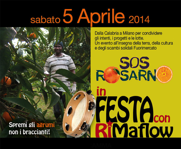 La festa si snoderà per le vie del quartiere popolare del Giambellino a Milano per poi approdare nella nostra fabbrica Rimaflow a Trezzano sul Naviglio in via Boccaccio 1. Un programma molto articolato, fatto di dibattito, musica e ballo, degustando i prodotti tipici della Calabria frutto del lavoro dei piccoli produtttori biologici di Rosarno che hanno dato vita all’omonima associazione SOS Rosarno che – come dicono loro – mette insieme i deboli con i deboli, perché con l’unità si diventa più forti.