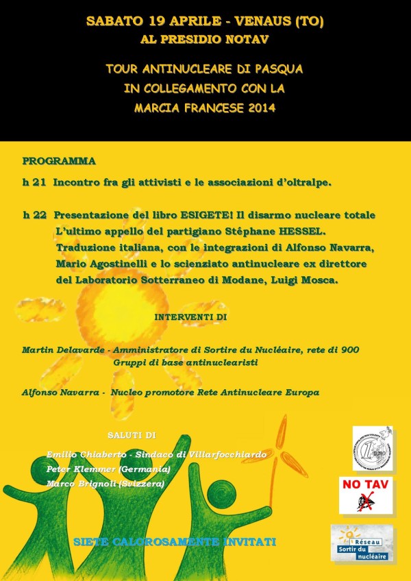 Nel corso della serata verrà tra l’altro presentato l’ultimo appello di Stéphane Hessel e Albert Jacquard “Per il disarmo nucleare totale”.