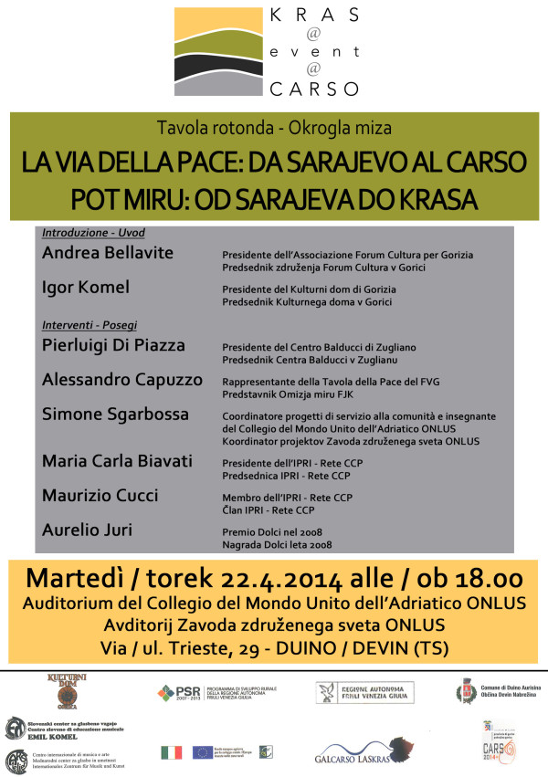 L’iniziativa punta a preparare e pubblicizzare il “Sarajevo Peace Event 2014” che si terrà a Sarajevo dal 6 al 9 giugno, con la partecipazione nelle cerimonie di apertura e di chiusura dei Premi Nobel per la Pace Mairead Maguire e Adolfo Perez Esquivel. Sono previsti tavole rotonde, oltre cento gruppi di lavoro e numerose attività culturali (aggiornamenti nel sito http://www.peaceeventsarajevo2014.eu/).