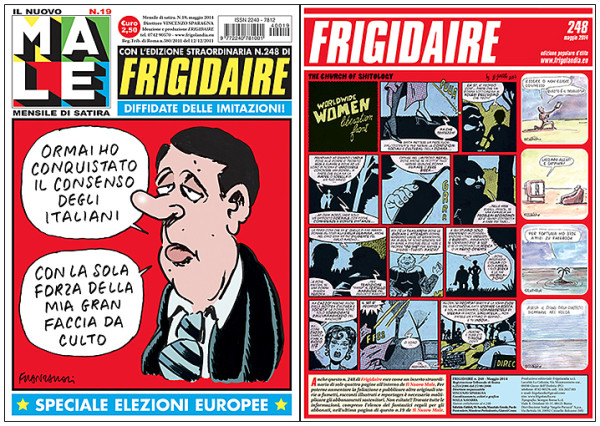L’Italia alla vigilia delle elezioni europee vista dalla satira più libera e irriverente. È in edicola fino alla fine di maggio IL NUOVO MALE n.19, diretto da Vincenzo Sparagna e coordinato e impaginato da Maila Navarra. All’interno, come ormai accade da vari mesi, anche l’edizione straordinaria di FRIGIDAIRE n.248.