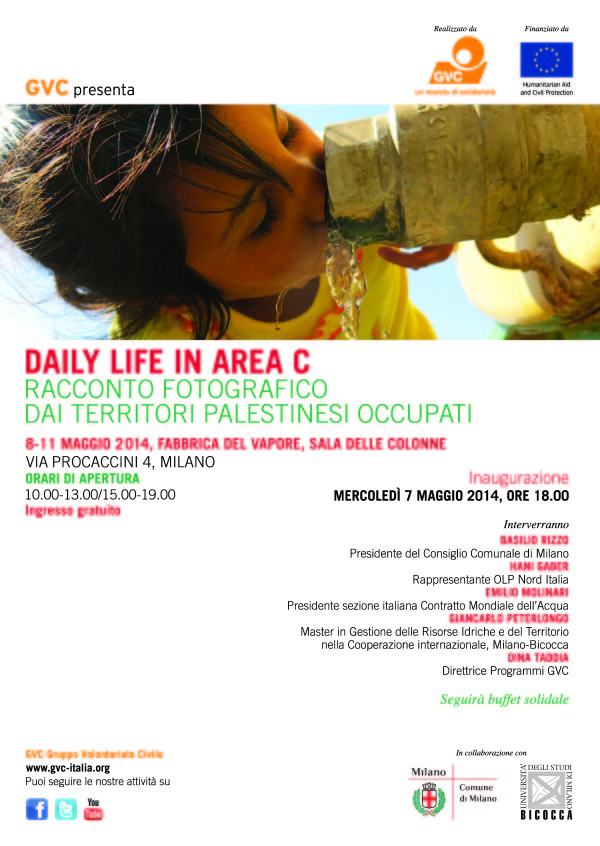 La mostra intitolata “Daily Life in Area C” nasce all’interno dell’omonimo progetto realizzato in Cisgiordania dalla ong GVC e finanziato da ECHO, la direzione generale per gli aiuti umanitari della Commissione Europea.