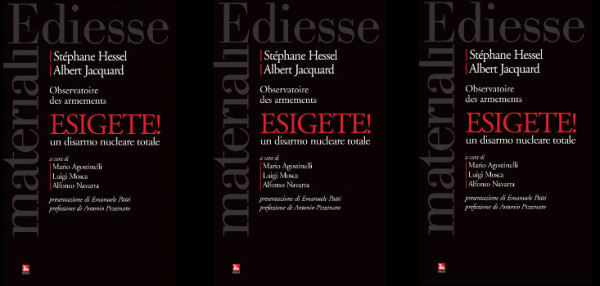 E’ un’urgenza, quella del disarmo nucleare totale, di priorità assoluta, che è responsabilità di tutti affrontare e risolvere. Come ebbe a dire JF Kennedy : “Occorre eliminare queste armi mostruose prima che esse ci eliminino”. La responsabilità della nostra generazione è quella di impedire un crimine immenso, irreparabile, assoluto, cui ci richiama il recente ed accorato monito di Stéphane Hessel ed Albert Jacquard, due grandi personalità pacifiste appena scomparse, quale un testamento, nel loro ultimo libro : “EXIGEZ ! un désarmement nucléaire total”.