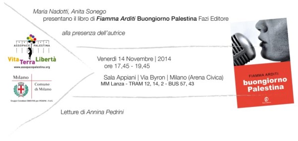 Prendendo spunto dal libro “Buongiorno Palestina” (ed. Fazi) di Fiamma Arditi, che raccoglie le testimonianze di musicisti, scrittori, attori, un dibattito offrirà l’occasione di far conoscere la Palestina attraverso l’arte e la cultura.