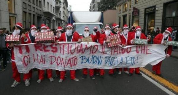 Vi ricordate lo sciopero generale del 12 dicembre e la notizia degli scontri tra polizia e studenti davanti al Pirellone, sede del Consiglio Regionale lombardo? Probabilmente sì, perché praticamente tutti gli organi di informazione hanno sbattuto gli scontri in prima pagina o, meglio, hanno riproposto il solito cliché degli antagonisti desiderosi di scontrarsi sempre e comunque con le forze dell’ordine. E così, quasi nessuno ha saputo la cosa più importante, cioè che gli studenti vestiti da Babbo Natale avevano scavalcato la recinzione del Pirellone per restituire simbolicamente al Presidente Maroni il “pacco” dei tagli natalizi all’istruzione.
