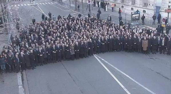 Un’immagine più di tutte illustra questa sterzata: la fila di capi di stato e governo in apparenza alla testa del corteo e in realtà separati dal resto dei manifestanti da un grande spazio vuoto.