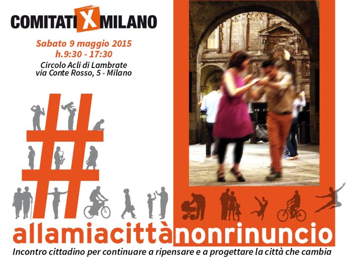 | Dove: Circolo ACLI Lambrate via Conte Rosso 5 – Milano Vicinanze M2 Lambrate Autobus 39 – 54 – 75 Tram 33 Quando: Sabato 9 Maggio 2015 Orario: 9.30 – 17:30 Registrazione: Per facilitare lo svolgimento dei lavori i posti disponibili sono solo 150. Per partecipare registrati cliccando QUI |