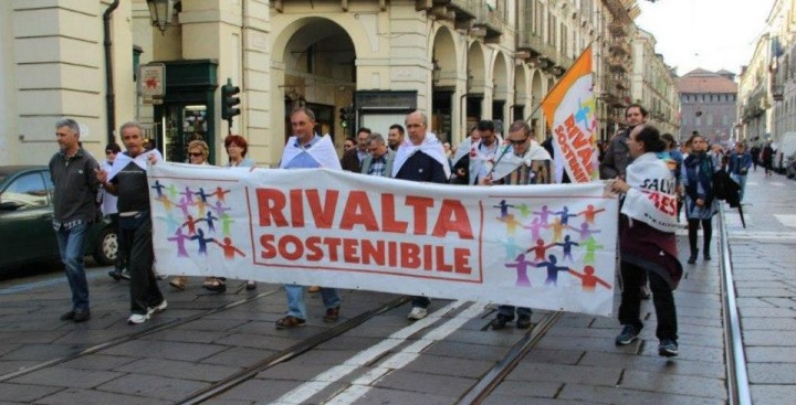 In questo contesto è nato il primo nucleo di Rivalta Sostenibile. «Sostenibilità per noi significa lasciare ai nostri figli il territorio in cui abitiamo in una condizione migliore di quella attuale». La cittadina è vittima da più di vent’anni di una cementificazione selvaggia e le prime azioni del comitato erano incentrate su temi quali mobilità sostenibile, promozione della cultura della bicicletta, percorsi sicuri scuola-casa, cura del territorio, ma soprattutto sulla necessità di avviare un’esperienza di partecipazione attiva dei cittadini alle scelte della propria polis, in modo da farli diventare dei protagonisti e non soltanto dei fruitori passivi delle politiche attuate. «Uno dei primi progetti concreti – racconta Marinari – è stata una campagna per la riduzione degli imballaggi, che ha coinvolto anche i commercianti, mentre attraverso l’iniziativa “Caccia al rifiuti”, rivolta ai bambini, abbiamo cercato di migliorare le sensibilità e l’attenzione per la pulizia del territorio. Abbiamo anche organizzato una serie di appuntamenti pubblici con personaggi che potessero creare consapevolezza su vari temi come economia, decrescita, politica, partecipazione, informazione».