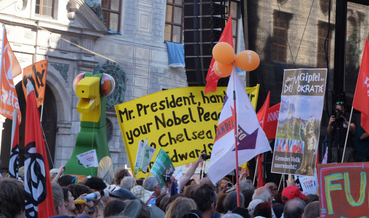 I relatori del vertice alternativo hanno riconosciuto che i politici non hanno spazio di manovra, dato che il potere reale ce l’hanno le grandi imprese. Come minimo, i capi di Stato non dovrebbero ostacolare soluzioni ai guasti economici che quelle causano in tutto il mondo. Gli accordi commerciali come il Partenariato Transatlantico per il Commercio e gli Investimenti (TTIP), il Partenariato Trans-Pacifico (TPP), e il previsto accordo di libero scambio UE-India, rischiano di rafforzare strutture che favoriscono più le grandi imprese che i singoli cittadini. Il TTIP è atteso dalla critica come un argomento importante a Elmau.