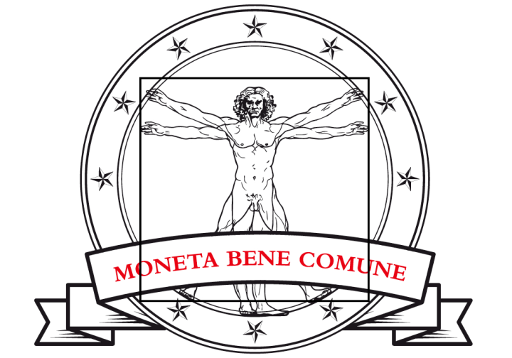 Immagine originale di Davide Salmaso. Il logo di “Moneta Bene Comune” rappresenta l’Uomo Universale che si avvicina al limite impossibile della quadratura del cerchio. Tale aspirazione si può perseguire in campo economico solo se la moneta è bene comune.