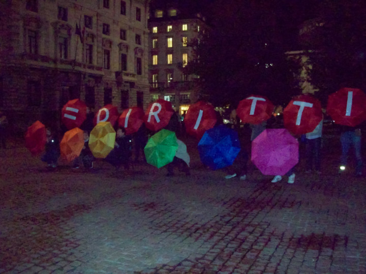 E proprio sotto Palazzo Marino, nella sera di questa fredda stagione, c’è un gruppo di persone che a un fischio prestabilito quegli ombrelli li apre. Sono uomini e donne e sono armati. Ombrelli come spade e scudi levati al cielo. Ombrelli con cui urlare i propri diritti.