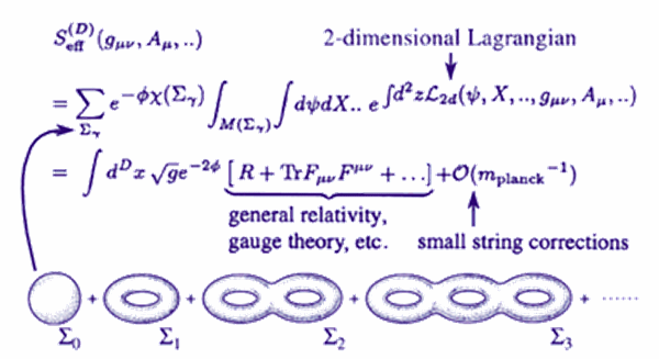 Per spiegarlo meglio proviamo ad immaginare di avere uno strumento musicale, ad esempio un corno francese uno di quelli spiraliformi che si avvolgono su se stessi, immaginiamo di soffiarci dentro, le vibrazioni prodotte sono originate dalla forma dello strumento e dal passaggio dell’aria che circola al suo interno, quindi possiamo dire che le vibrazioni emesse ovvero le note sono determinate dal percorso che compie l’aria quando soffiamo dentro lo strumento, cambiando passaggio dell’aria, ad esempio premendo un tasto o un altro dello strumento, andiamo a variare il percorso che fa l’aria stessa e di conseguenza il tipo di vibrazione prodotta. La nota è data dall’interazione dell’aria, dalla forma dello strumento e dal percorso che quest’aria compie durante la sua circolazione. Nella teoria delle stringhe tutti i numeri sono il risultato di come le stringhe possono vibrare, proprio come le correnti di aria che vibrano in uno strumento che sono influenzate dalla forma, dalle pieghe, dalle curve dello strumento, così le stringhe stesse sono influenzate producendo differenti vibrazioni a seconda delle linee geometriche che attraversano in queste microscopiche dimensioni, mutano vibrazione in base al tipo di percorso in cui esse si muovono. Le infinitesimali dimensioni in cui le stringhe vibrano, mutano di forma, e le vibrazioni mutano a loro volta, producendo differenti tipi di particelle e differenti composizioni della materia e della realtà per come noi la conosciamo. Perciò se si arrivasse a conoscere con esattezza, la forma di queste microscopiche dimensioni, all’interno delle quali le stringhe vibrano, ecco che saremmo in grado di calcolare le “note” e tutti i tipi di vibrazioni per così dire “consentiti”.