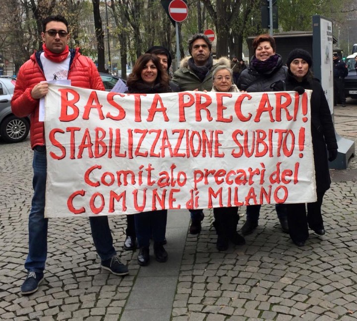 Due giorni fa, mentre stavo entrando al Teatro Dal Verme per la consegna degli Ambrogini, ho incontrato una folta rappresentanza dei lavoratori precari del Comune che, con il loro striscione, ricordavano a tutti che la loro vertenza è ancora aperta.