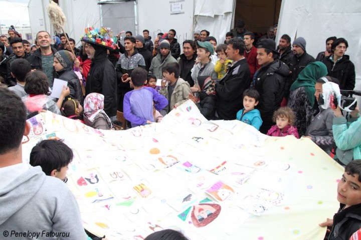 Durante il suo soggiorno la Parata “Frontiere aperte” ha tenuto laboratori artistici per bambini, ballato, cantato canzoni composte per l’occasione e distribuito pasti e provviste offerti dalla mensa “Allos Anthropos” e dal gruppo di musicisti “Antisomata”.