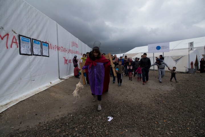Vilma ha raccontato la sua idea ad altri artisti e dopo una ventina di giorni, il 20 febbraio 2016, la prima parata di artisti è stata organizzata nel campo di Idomeni.