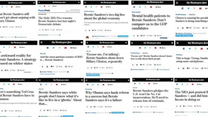 Il Washington Post sta ricevendo numerose critiche per aver pubblicato 16 articoli negativi su Bernie Sanders in sole 16 ore. Da domenica 6 marzo, giorno del dibattito tra i candidati democratici tenutosi a Flint, nel Michigan, a lunedì 7 marzo, il quotidiano ha dato ampio spazio alle critiche a Sanders.