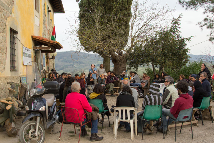 Il 2 aprile 2016 la “Carovana Italiana per i diritti dei migranti, per la dignità e la giustizia” è partita da Torino e nel pomeriggio è arrivata a Mondeggi, nella fattoria senza padroni, enorme tenuta di proprietà della provincia di Firenze, completamente abbandonata prima dell’arrivo, due anni fa, di un gruppo di persone, alcuni produttori biologici, altri professori, studenti, semplici cittadini locali e stranieri, che, insieme, hanno deciso di ridare vita alla fattoria con un tipo di allevamento e agricoltura tradizionali, l’istituzione di una scuola contadina, la coltivazione degli ulivi per fornire olio gratuitamente agli abitanti.