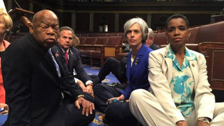 L’idea del sit-in è stata lanciata dall’anziano deputato afro-americano John Lewis, un veterano del movimento per i diritti civili, che fu alla guida della celebre marcia su Selma e accanto a Martin Luther King, quando pronunciò il famoso discorso “I have a dream”.