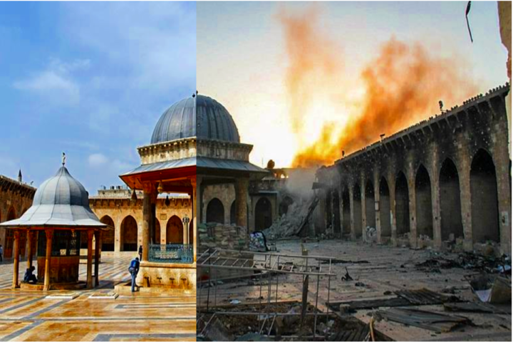E ancora in questi giorni assistiamo alla distruzione di Aleppo che grazie ai nostri bombardamenti paga, probabilmente, il prezzo più pesante. Duramente danneggiata in scontri e bombardamenti la moschea degli Omayyadi, costruita nel 705. Non sono state risparmiate dalle violenze nemmeno la cittadella del XII sec. e la città antica con lo storico Suq (mercato), centro commerciale dal secondo millennio a.c. che conserva le testimonianze di assiri, greci, romani e ottomani.