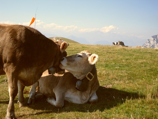 Solo in modo naturale. Negli altri allevamenti, quelli intensivi da latte, lo fanno in modo artificiale con costi molto alti e trattando l’animale come una macchina. La mucca viene ingravidata a 24 mesi la prima volta, dopo tre o quattro volte l’animale si ammala e viene scartato. E’ naturale che si ammali: deve produrre 40 litri di latte al giorno per tutta la sua breve vita con conseguenti problemi, mastiti e malattie correlate. Nel nostro allevamento le mucche sono completamente libere e partoriscono in modo naturale.