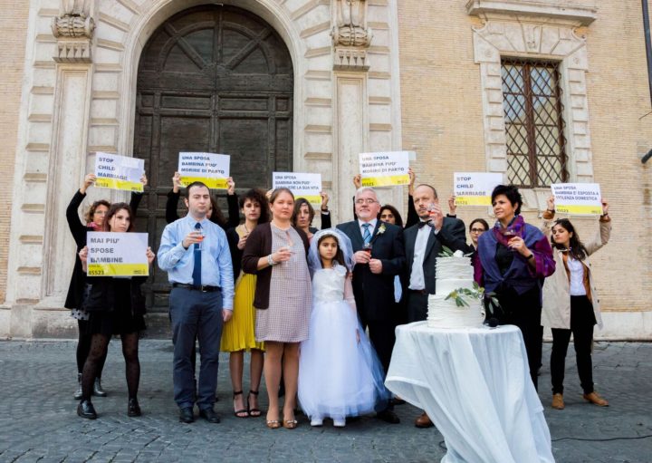Giovedì 27 ottobre alle 12 in piazza di S. Maria in Trastevere a Roma è stato inscenato un banchetto nuziale per denunciare la pratica dei matrimoni precoci e forzati. Gli invitati alle nozze, attivisti di Amnesty International Italia e partecipanti in abiti da cerimonia, si sono raccolti festosi attorno agli sposi, Giorgia di 10 anni e Paolo di 47, per il taglio della torta e il brindisi finché non hanno scoperto perché alla sposa è stata sottratta l’infanzia. È intervenuto per presentare la campagna MAI PIÙ SPOSE BAMBINE: Gianni Rufini, direttore generale di Amnesty International Italia.