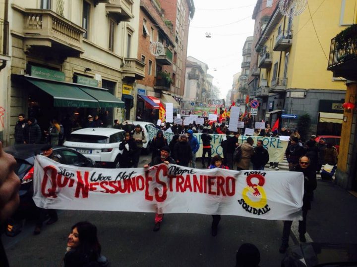 Grande partecipazione di cittadini e associazioni al corteo promosso dal Comitato Zona 8 solidale sabato 17 dicembre, alla vigilia della Giornata Internazionale dei Migranti. Erano presenti abitanti del quartiere e realtà impegnate da anni sul terreno dell’accoglienza, del dialogo, della denuncia e della solidarietà, come il Naga, la rete Milano senza Frontiere, Convergenza delle Culture ed Emergency, insieme all’ANPI, ad Amnesty International, alla FIOM, alla Camera del Lavoro di Milano e a varie forze politiche, da Milano in Comune a SEL a Rifondazione, all’assessore alle Politiche sociali del Comune Pierfrancesco Majorino e al presidente dell’Anpi Roberto Cenati.