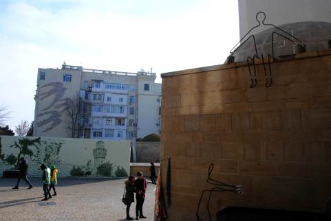 Non c’è negozio o palazzo pubblico che non abbia un ritratto del padre-padrone della nazione, o piazza importante senza una sua statua, talvolta abbracciato al figlio che in maniera dinastica gli è succeduto dal 2003 al potere. E fa bene M. ad esser prudente. Durante la nostra permanenza un blogger azero è stato rapito: aveva espresso critiche contro la corruzione. D’altra parte ci dice che non è delicato fare domande in giro sul governo e la guerra, né dire di essere stati in passato in Armenia. La ferita della perdita del Nagorno-Karabak è ben presente nei racconti di tutti, naturalmente da questo lato del confine nessuno dubita che l’Armenia sia l’aggressore e il Nagorno azero e culla della sua storia.