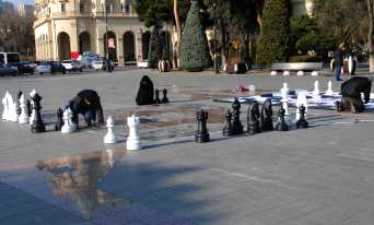 M., un ragazzo laureato che sbarca il lunario facendo vari lavori e la guida non ufficiale, ci spiega che i motivi di questa crisi sono diversi: la vendita del gas per motivi geopolitici all’ Iran a prezzo “ribassato”, il crollo del prezzo del petrolio e le spese del comparto militare, dell’eterna mobilitazione-stato di guerra contro l’Armenia per il Nagorno-Karabak. Prudentemente M. non accenna a un quarto motivo: la corruzione e l’arricchimento spudorato della famiglia Alijev che dal momento dell’indipendenza alla dissoluzione dell’Urss, si è impadronita del potere con elezioni-plebiscito per lo meno dubbie, favorendo un culto della personalità dilagante nel Paese.