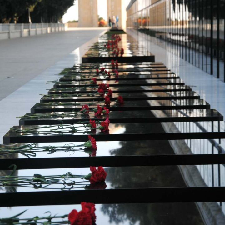 Un lungo muro all’aperto con moltissime lapidi e nomi. Ognuno ha un garofano rosso che viene cambiato ogni giorno. M. ci dice che praticamente ogni famiglia azera ha almeno un caduto in questa guerra. Rimane in silenzio per un po’, poi prima di salutarci dice che presto partirà anche lui per il confine per uno dei periodi di richiamo, che il servizio militare è obbligatorio e semi permanente.