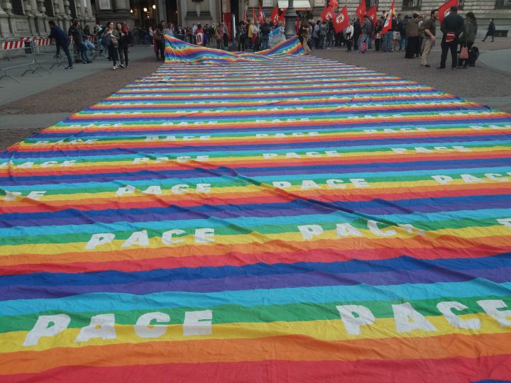 Oggi alle 18.30 si è tenuta in Piazza Scala una manifestazione per la pace e contro la guerra.