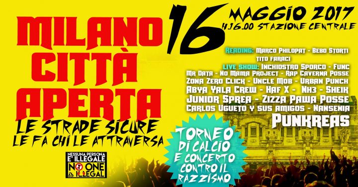 A due settimane dai vergognosi avvenimenti di martedì 2 maggio, la Milano che ripudia il razzismo vi invita a costruire una grande giornata di musica, sport e festa contro i rastrellamenti eseguiti alla Stazione Centrale.