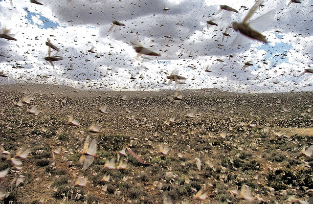 Le locuste del deserto sono cavallette che possono formare grandi sciami, i quali rappresentano una minaccia grave alla produzione agricola, ai mezzi di sussistenza e alla sicurezza alimentare. Si riscontrano tipicamente nel Sahara, e dalla penisola araba fino in India. L’insetto singolo è innocuo, ma uno sciame può coprire lunghe distanze e causare danni diffusi ai raccolti. Uno sciame di un chilometro quadrato di estensione contiene circa 40 milioni di insetti, e può consumare in un giorno la stessa quantità di cibo di circa 35 mila persone.