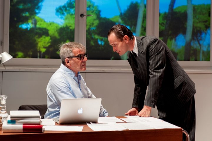 Il sipario si apre su una casa di Roma, nel grande studio con librerie fino al soffitto e finestre dalle quali s’intravedono pini marittimi, dove un intellettuale seduto alla scrivania pensa al padre che la morte, avvenuta quando era un infante, gli ha sottratto. Oggi l’uomo ha sessant’anni e ricorda quando da piccolo si avvolgeva nel vestito del genitore immaginando di essere abbracciato da lui. A un tratto sul palcoscenico – doppiopetto grigio, Borsalino in mano, brillantina sui capelli – il padre diventa una presenza reale e i due, finalmente, possono dirsi “Ciao”: sono Vittorio Veltroni (Francesco Bonomo) e suo figlio Walter (Stefano Santospago).