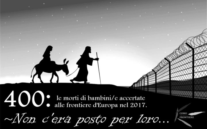 Saremo davanti al Duomo di Como la notte di Natale a partire dalle 23.30 e accenderemo 400 lumini, uno per ogni bambina/o assassinata/o dalle frontiere, usando la fiamma della Luce della pace, venuta da Betlemme per ricordare a questo Occidente fiacco ed egoista che Pace e giustizia esigono attenzione e vigilanza, affinché la speranza non si spenga nell’animo delle persone.