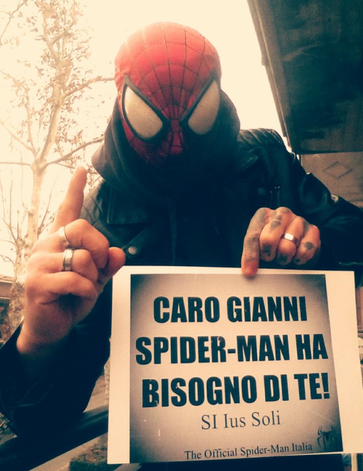 Mauro Merlino, del Movimento LA VOCE DEGLI INASCOLTATI, nei panni dell’Uomo Ragno lancerà un appello proprio da Bologna, di fronte alla Torre degli Asinelli, sabato 20 gennaio dalle 10, in merito alla mancata approvazione dello Ius Soli. L’appello verrà lanciato dallo Spider-Man ufficiale a Gianni Morandi (e non solo, l’appello è rivolto anche ad altri artisti), che ha fatto della sua musica anche un passaporto per tutti quei migranti italiani che ora vivono e lavorano all’estero…