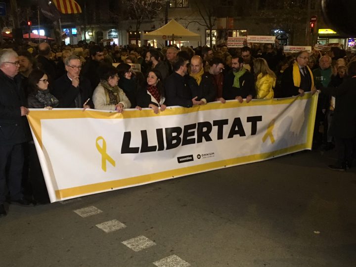 A sostegno della protesta contro tale situazione, alle 20 sono state convocate di fronte a più di cinquanta municipi marce pacifiche e silenziose per reclamare la libertà e dimostrare, ancora una volta, che i catalani sono gente di pace. A Barcellona, cinque colonne di persone, partite da 5 diverse zone della città, si sono unite al Paseo Sant Joan. I manifestanti marciavano con striscioni, chiedendo la libertà dei prigionieri e con slogan del tipo “li vogliamo a casa”, “siamo gente di pace” o “siamo una repubblica”.