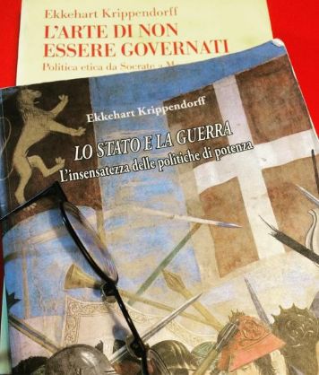 Ho trovato le risposte più convincenti a queste insistenti domande rileggendo alcune pagine del politologo tedesco Ekkehart Krippendorff ne “L’arte di non essere governati” (del 1999, ma pubblicato in italiano nel 2003), in particolare il capitolo “Critica dell’istituzione militare”.