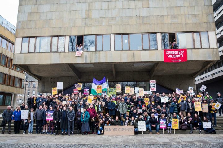 La prima fase dello sciopero si concluderà venerdì 16 marzo e ora sono in corso discussioni su come intensificare ulteriormente l’azione. La cosa più probabile è l’annuncio di una nuova ondata di scioperi dopo Pasqua, in occasione del periodo degli esami. Nel frattempo continuano le azioni in sostegno degli scioperanti portate avanti dal movimento studentesco. In 17 università sono in corso delle occupazioni, attraverso cui gli studenti vogliono esercitare ulteriore pressione sulle autorità accademiche e allargare l’azione per mettere in discussione l’intero sistema mercificato che sta alla base dell’università britannica e rivendicare un’università libera e gratuita per tutti.