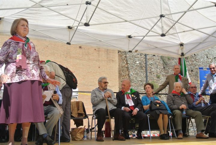 Verso le ore 11:30 il corteo è giunto a destinazione, atteso dalla folla e dai partigiani che lì aspettavano i loro compagni in marcia. Tanti i partigiani che hanno voluto parlare per lasciare una testimonianza e, soprattutto, per spronare le migliaia di persone presenti a non arrendersi, a resistere per gli ideali di libertà, giustizia e uguaglianza per cui in troppi hanno perso la vita e che oggigiorno sembrano essere finiti nei dimenticatoio.