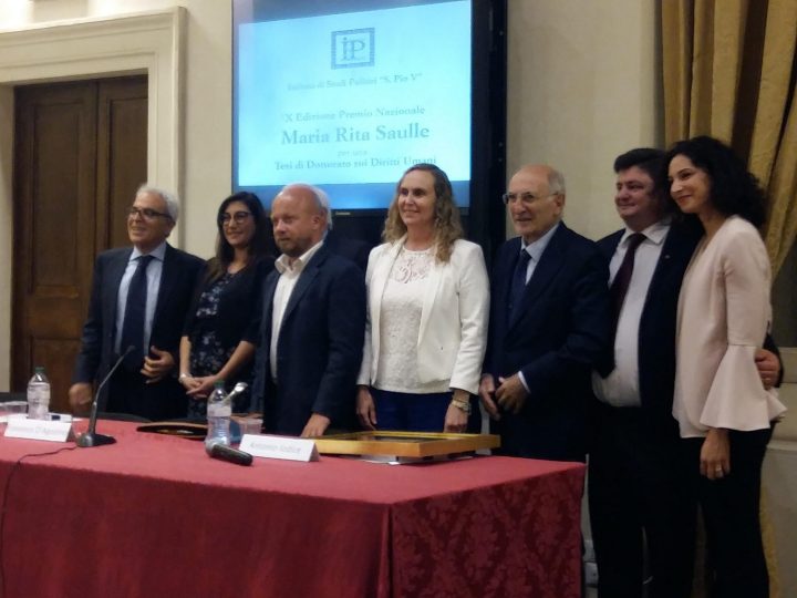 Si è svolta a Roma in questi giorni la decima edizione del Premio “Maria Rita Saulle” che l’istituto S. Pio V, anno dopo anno, destina alla migliore Tesi di Dottorato sui Diritti Umani, con l’intento di promuovere e incoraggiare gli studi nelle discipline economiche, giuridiche, politiche e sociali. Il tema scelto per la decima edizione è stato “Diritto al lavoro come diritto umano”. L’iniziativa è stata presieduta dal prof. Paolo De Nardis, Presidente dell’Istituto di Studi Politici “S. Pio V”, dal prof. Antonio Iodice, Presidente Onorario dell’Istituto. Una laudatio della tesi premiata è stata tenuta dal prof. Francesco D’Agostino, già Presidente del Comitato Nazionale di Bioetica.