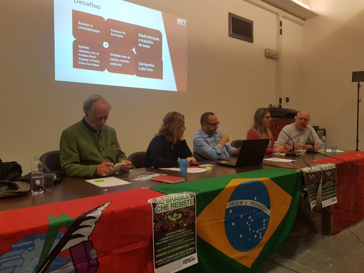 Venerdì 16 novembre, incontro presso la Camera del Lavoro di Milano: ospiti due importanti rappresentanti della CUT, la centrale unica dei lavoratori brasiliani, il più forte sindacato, quello da cui arrivò a suo tempo Lula, un metalmeccanico che diventò presidente.