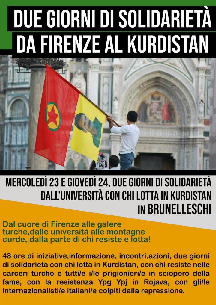 – nella Biblioteca Umanistica in Piazza Brunelleschi alle h21:00 si terrà un dibattito sulla mobilitazione dei prigionieri politici kurdi, con la partecipazione di un rappresentante kurdo e delle delegazioni internazionali a cui è stato negato l’incontro con la deputata Leyla Guven;