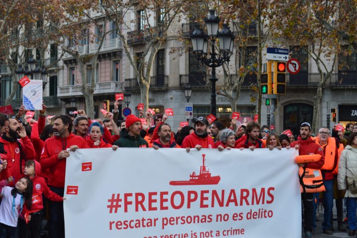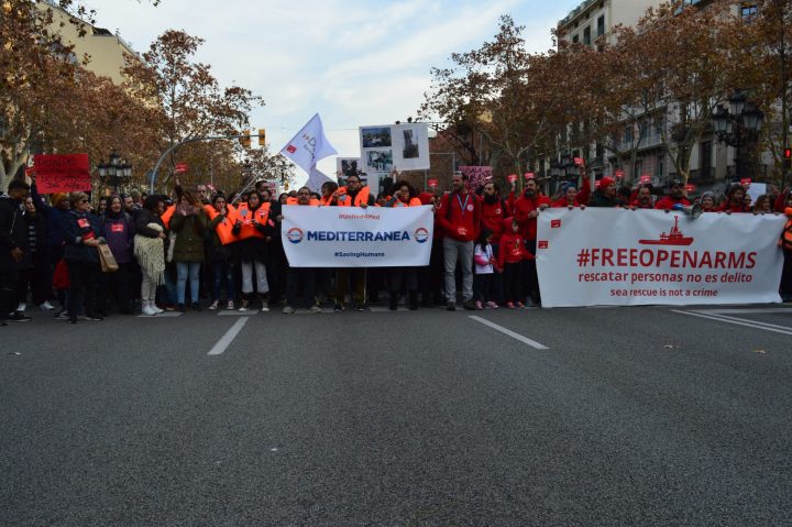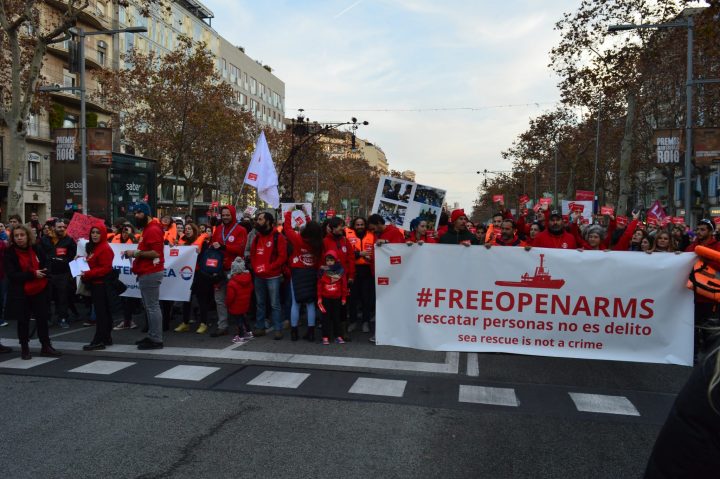 Circa 500 persone, secondo la polizia (2.000 secondo gli organizzatori) hanno aderito alla manifestazione convocata ieri pomeriggio da parte dei volontari di Open Arms come forma di protesta riguardo il blocco da parte della Capitaneria Marittima (Ministero dello Sviluppo) circa la navigazione di Open Arms nel Mediterraneo centrale. Open Arms è un’organizzazione non governativa e senza scopo di lucro la cui missione principale è il salvataggio in mare di coloro che tentano di giungere in Europa sfuggendo a conflitti bellici, persecuzione o povertà. Di fronte all’ingresso della Delegación del Gobierno Español in calle Mallorca, luogo in cui, alle 16, ha avuto inizio la manifestazione, Òscar Camps, fondatore di Open Arms, ha dichiarato che “tali decisioni costano vite umane”.