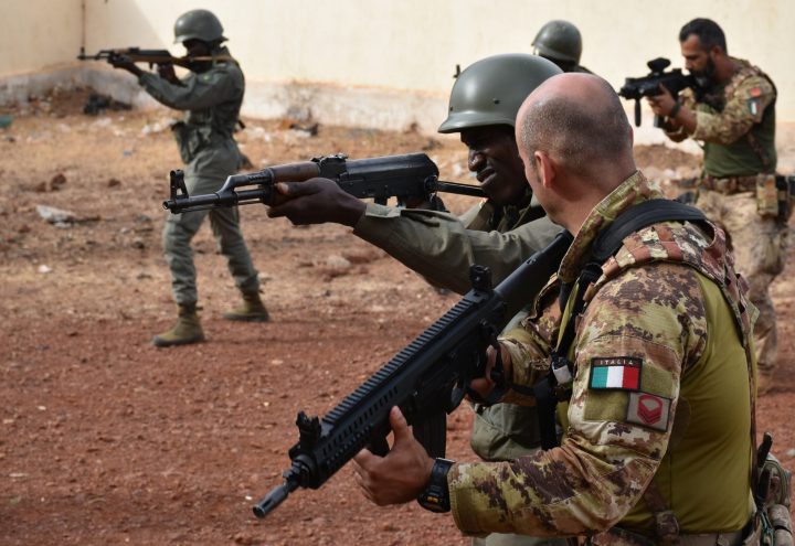 Contemporaneamente, l’Italia vi svolge una missione sotto l’egida dell’Europa (“European Union Training Mission”, in sigla EUTM Mali); qui «L’attuale contributo nazionale prevede un impiego massimo di 12 militari, quali istruttori militari e personale di staff» per «fornire addestramento ed assistenza sanitaria a favore delle Forze Armate maliane operanti sotto il controllo delle legittime autorità civili locali, al fine di concorrere al ripristino delle capacità militari necessarie alla riacquisizione dell’integrità territoriale del Paese».