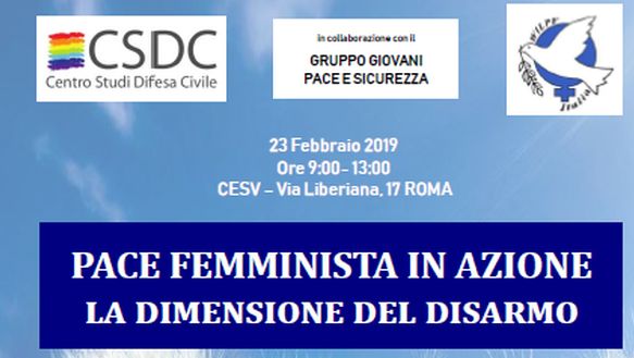 Il 23 Febbraio 2019 dalle 9 alle 13 presso CESV – Via Liberiana, 17 ROMA la WILPF promuove, nell’ambito della Campagna “Pace femminista in Azione” un incontro dal titolo “La dimensione del disarmo” in collaborazione con il Gruppo Giovani Pace e Sicurezza.