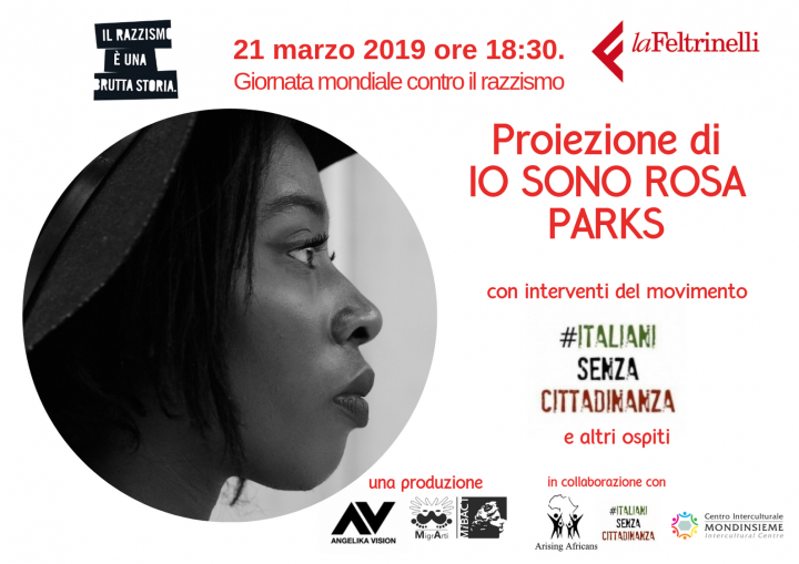 Sono tutti Rosa Parks i 12 ragazzi e ragazze di #ItalianiSenzaCittadinanza protagonisti di Io sono Rosa Parks. Lei nel 1955 rifiutò di cedere il sedile a un bianco. Loro, oggi, rifiutano di scendere dall’autobus Italia anche in un momento difficile come questo. In occasione della Giornata Mondiale contro il razzismo, 21 marzo 2019, Librerie Feltrinelli e l’Associazione Il Razzismo è una brutta storia presentano in 15 città il cortometraggio, vincitore del premio MigrArti alla 75esima mostra internazionale del cinema di Venezia, con interventi e testimonianze di ragazze e/o ragazzi del movimento e altri ospiti.