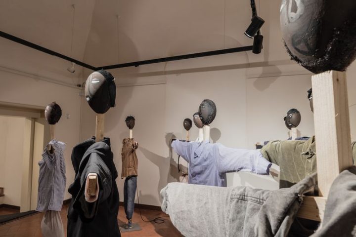 Punti esclamativi che invadono le città e i media. Punti esclamativi razzisti, fascisti, che si giocano la campagna elettorale sulla paura inoculata contro l’inerme, capro espiatorio dell’inadeguatezza politica e morale, agitato come spauracchio contro il malessere diffuso. Da queste e da altre considerazioni scaturisce Presenze, l’installazione che Chiara Valentini e i ragazzi richiedenti asilo hanno realizzato modellando spaventapasseri a immagine e somiglianza di ciascuno, dai tratti fisici all’abbigliamento. Simulacri della paura, distrattori a cui solo gli uccelli credono, sono stati disposti in modo da obbligare il visitatore ad avvicinarsi per innescare la voce inaspettata del fluire della memoria personale: la rievocazione attiva nell’altro inferenze, parallelismi, proiezioni. A partire dall’ascolto, dalla relazione comunicativa, si innesca il processo conoscitivo.