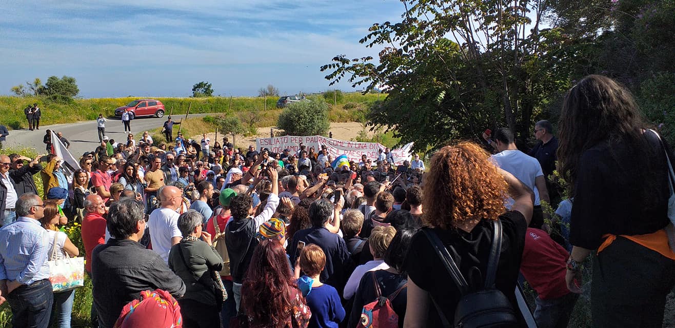 Una giornata intensa, cominciata la mattina con una processione di donne che ha accompagnato il “braccio” dei santi Cosma e Damiano per i vicoli del borgo fino al mare. “Il paese era in festa mentre arrivavano persone e gruppi da ogni dove a sostegno della resistenza di questo simbolo mondiale di accoglienza” continua Roberta Ferruti. “Trasite favorite” si dice da queste parti e tutti si sono sentiti a casa, accolti come amici fraterni. La fondazione È STATO IL VENTO, con gli interventi di padre Zanotelli, Gianfranco Schiavone e Chiara Sasso, ha presentato il percorso da fare e il sentiero da percorrere insieme….lungo ma emozionante come i 100 passi che tutti abbiamo fatto per raggiungere Domenico Lucano, esule dalla sua Riace, nell’ultimo metro di confine di Stignano. Una giornata da non dimenticare mai. Grazie a tutti per la partecipazione, l’affetto e il sostegno a questo paese che in terra di Ndrangheta sta scrivendo la storia di un altro mondo possibile”.